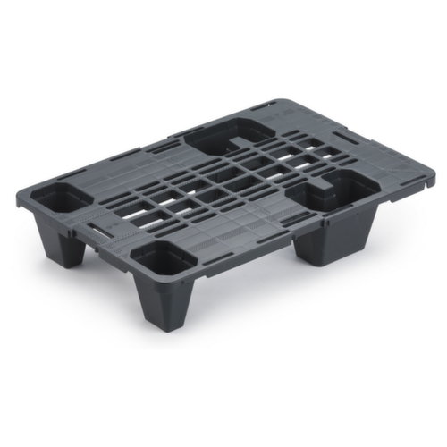 "metaDescription": "Mini-Palette, Polyethylen, Länge x Breite 600 x 400 mm - PE, HxLxB 115x600x400mm, Tragl. stat. 600kg, Oberdeck durchbrochen, grau",