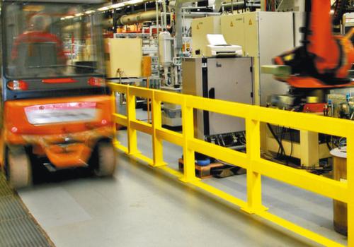 "longDescription": "<h2>Rammschutzgeländer</h2><strong>schützt Personen, Inventar und Arbeitsbereiche</strong><br><ul><li><strong>Individuell zusammenzustellen</strong> vom einzelnen Poller bis zum kompletten Geländer</li><li><strong>Trennt Arbeitsbereiche eindeutig von Verkehrswegen</strong> - z. B. für den Staplerverkehr im Lager</li><li><strong>Signalwirkung</strong> - mit Kunststoffbeschichtung in gelb</li><li><strong>Minimiert die Verletzungsgefahr</strong> - keine überstehenden Laschen oder Schrauben</li></ul><br><strong>Sie haben die Wahl:</strong><br><strong>Standpfosten</strong> als Anfangs-/Endpfosten, Mittelpfosten oder Eckpfosten<br><ul><li><strong>Querbalken</strong> - in verschiedenen Längen</li><li><strong>Witterungsbeständig</strong> - für den Außenbereich zusätzlich feuerverzinkt</li></ul>",