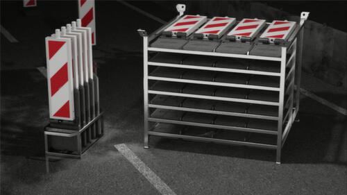 Für den Außenbereich geeignet. Geeignet für den Einsatz im Straßenbau. Set bestehend aus: 5 Klappbaken, 1 Transportbox.