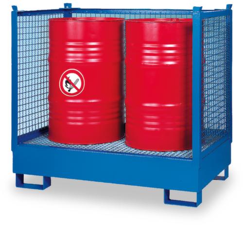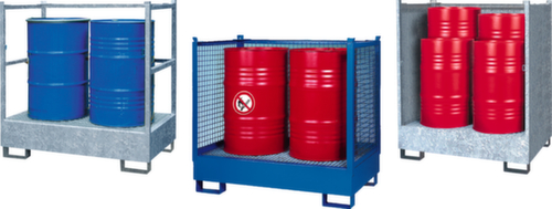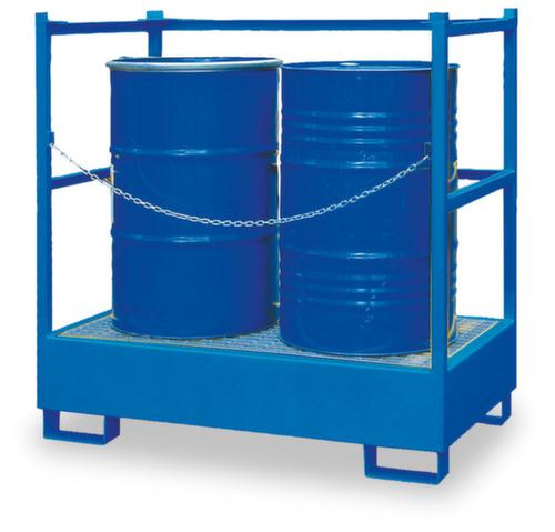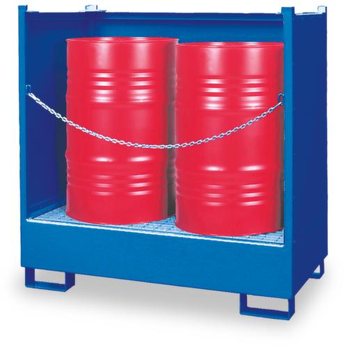 "description": "f. 2x200l Fass, Auffangvol. 220l, HxBxT 1410x1410x810mm, m. Gitterrost, 3 Gitterwände, Stahl, RAL5015",