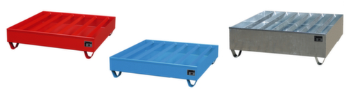 "description": "f. 2x200l Fass, Auffangvol. 224l, HxBxT 360x1200x800mm, Stahl, RAL3000",