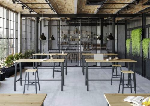 "longDescription": "<h2>Stehtisch Industrial</h2><strong>für kurze Besprechungen im Stehen</strong><br><ul><li><strong>Langlebig</strong> - Tischplatte aus Holz- <strong>Stabiles 4-Fußgestell</strong> aus Stahl</li><li><strong>Bodenschonend</strong> durch Filzgleiter</li></ul><strong>Sie haben die Wahl:</strong><br><ul><li><strong>Industriedesign oder moderne Optik</strong> - Gestell wahlweise mit matter Pulverbeschichtung im Stahlfarbton oder farbiger Pulverbeschichtung- <strong>Natürlich oder auffällig</strong> - Tischplatte wahlweise im natürlichen Holzton oder farbig</li></ul><strong>Anlieferung!</strong><br><ul><li>Die Anlieferung erfolgt zerlegt - einfache Selbstmontage</li></ul>",