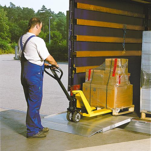 "longDescription": "<h2>Überfahrbrücke</h2><strong>für flache Auffahrwinkel dank beweglicher Zunge</strong><br><ul><li><strong>Auch bei Höhendifferenz \"0\" einsetzbar</strong></li><li><strong>Zusätzlicher Halt</strong> durch unterseitiges Gummiprofil</li><li><strong>Sicheres Arbeiten</strong> - mit rutschsicherer Lauffläche</li><li><strong>Robust und langlebig</strong> - aus Aluminium</li></ul>",