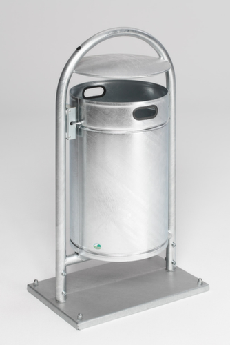 "longDescription": "<h2>Abfallbehälter mit Rohrbogenständer</h2><strong>formschön und robust für den Außenbereich</strong><br><ul><li><strong>Absolut wetterfest und langlebig</strong> - aus feuerverzinktem Stahlblech</li></ul><br><strong>Sie haben die Wahl:</strong><br><ul><li><strong>Schnelle oder extra standfeste Montage</strong> - zum Aufdübeln oder Einbetonieren</li><li><strong>Mit Regenschutz oder offen</strong> - mit oder ohne Schutzdach</li><li><strong>Mehr Farbe</strong> - zusätzlich mit Pulverbeschichtung</li></ul>",